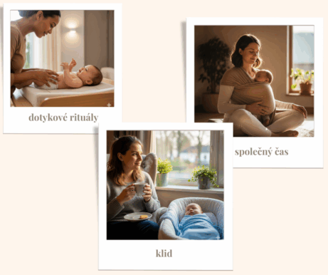 Spánek se stane přirozenější, pláč se zmírní a Vy získáte pocit, že večer už není boj, ale tichý přechod do klidu a jistoty. Z každého dne se stává prostor pro spojení – nejen s miminkem, ale i se sebou.