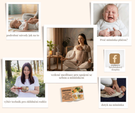 - Jak přinést úlevu i sobě. Naučíme Vás, jak při péči o dítě nezapomínat dýchat, jak se zklidnit a zůstat přítomní i ve chvílích, kdy je pláč intenzivní.